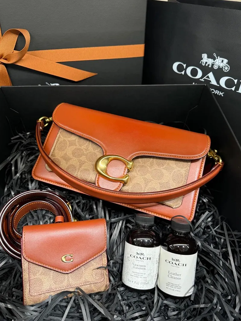 COACH 老花防刮皮革防水耐汙+泰迪棕質感牛皮+精美立體C字