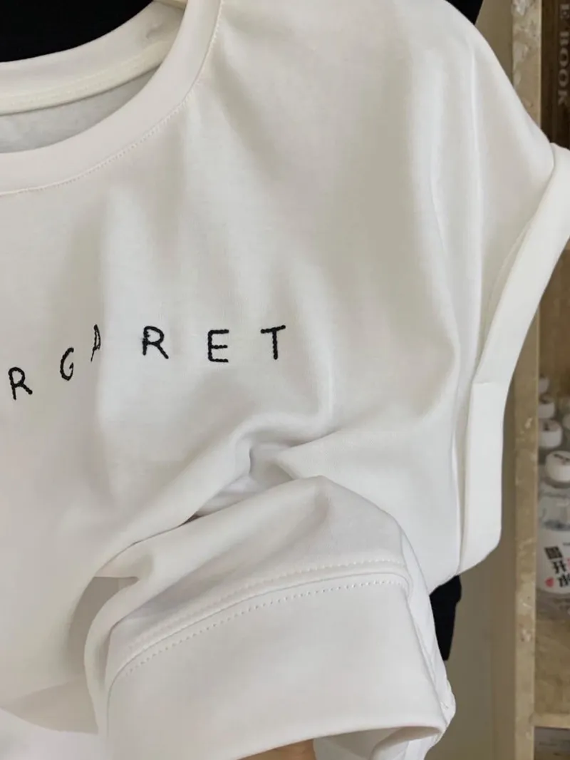韓系爆棚簡約百搭款 上衣上有刺繡英文簡約LOGO