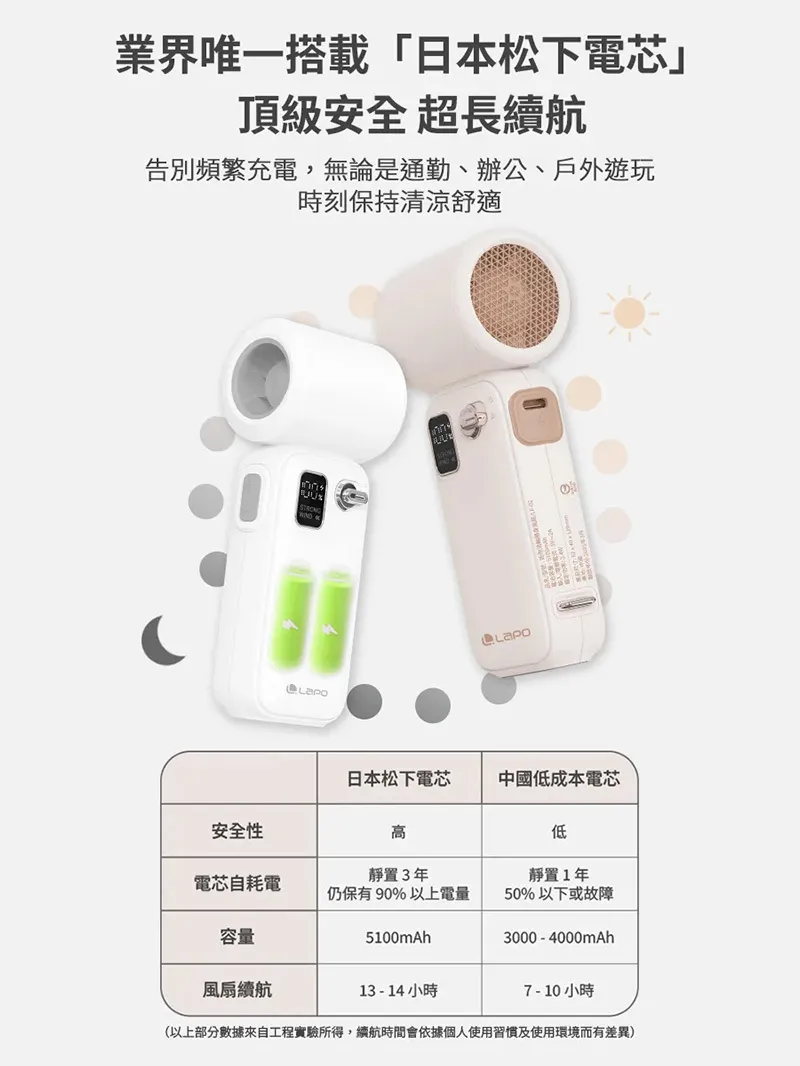➤市面罕見風扇使用Panasonic日本松下電芯的