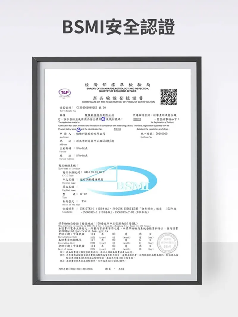 ➤還通過台灣 BSMI電器安全認證,使用更安心!