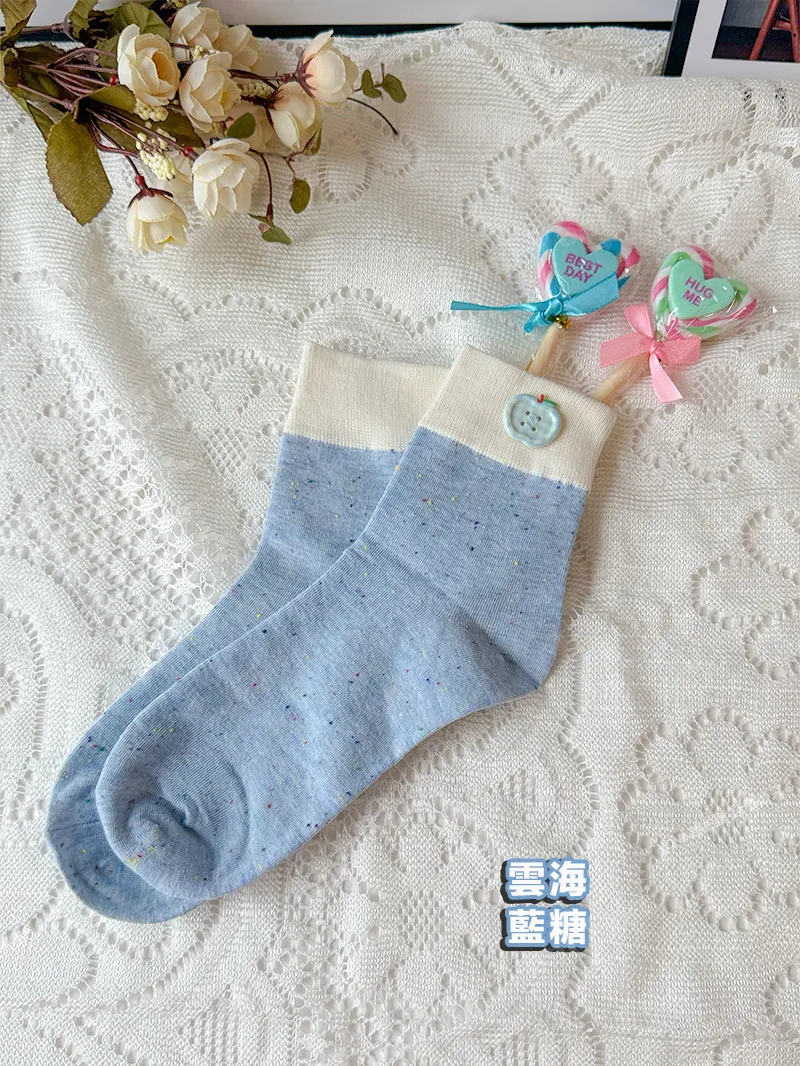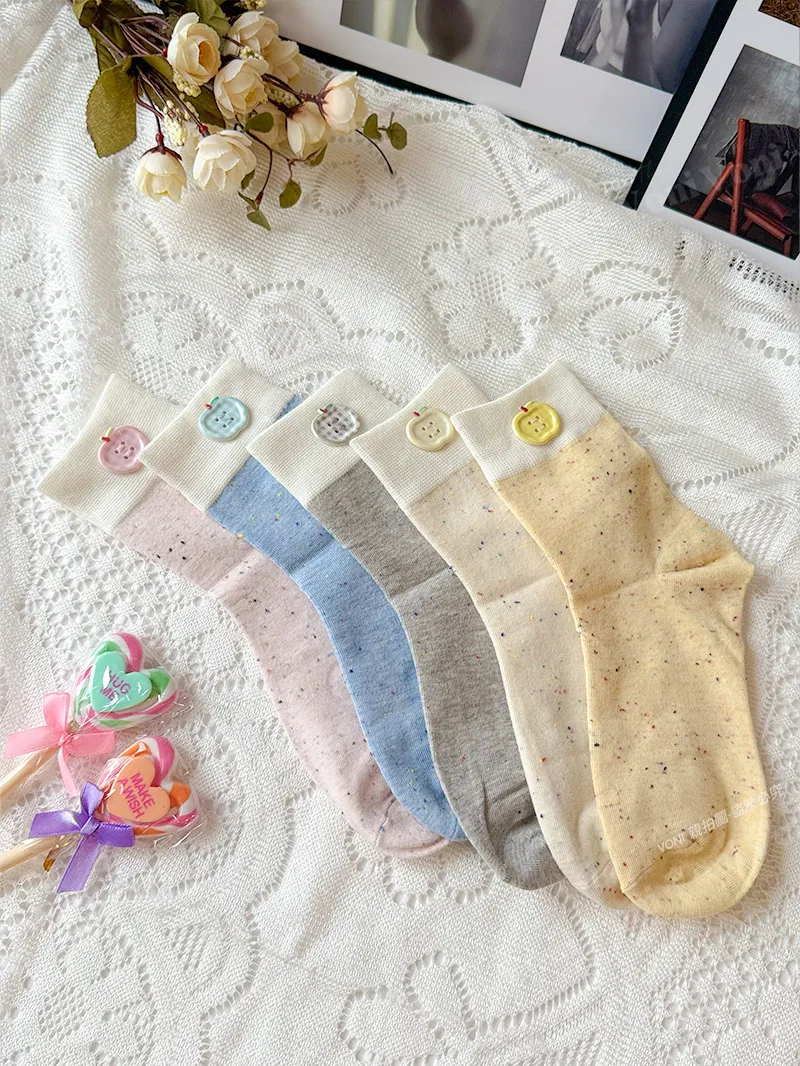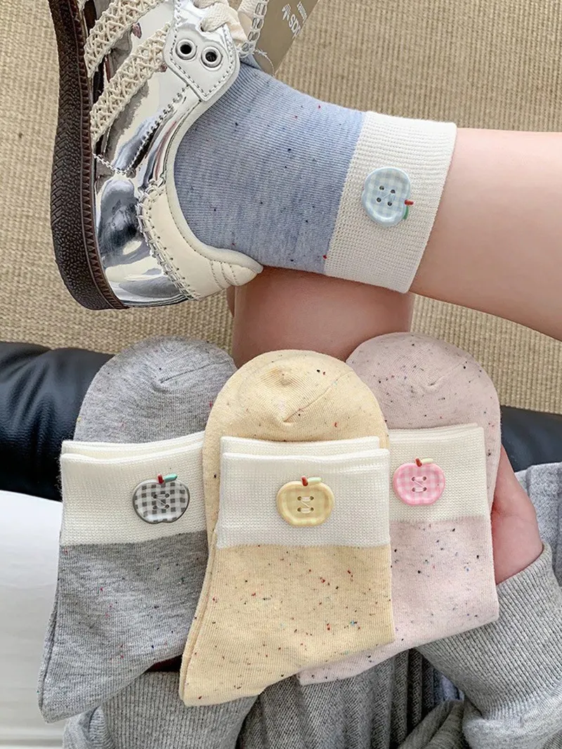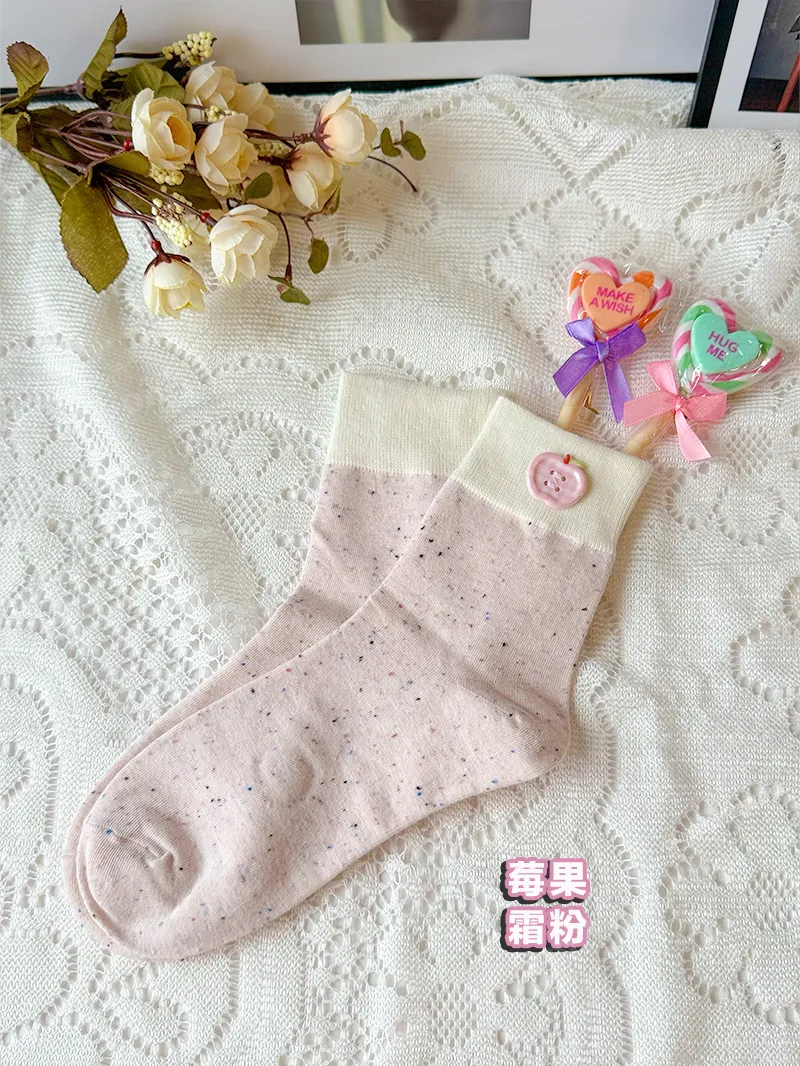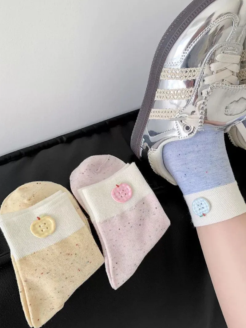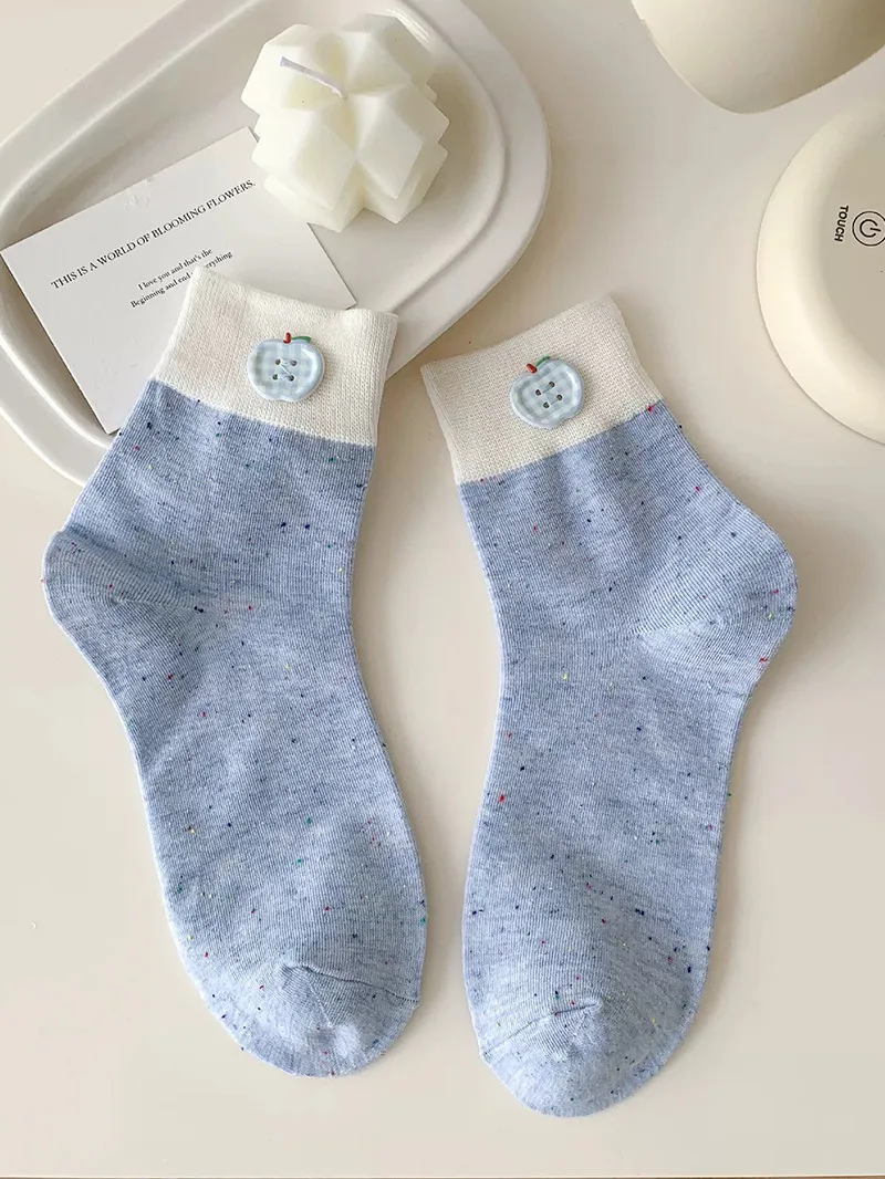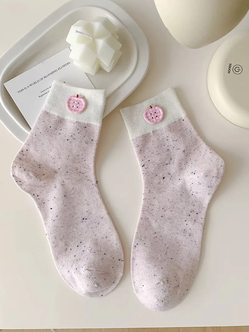 蘋果鈕釦少女襪 以療癒的馬卡龍配色搭配俏皮立體蘋果扣飾