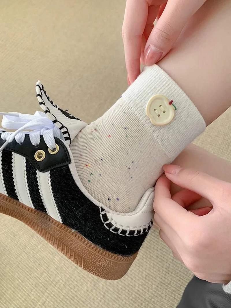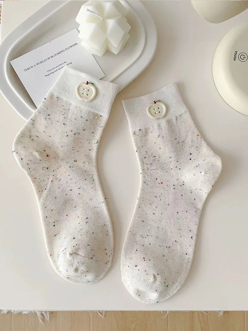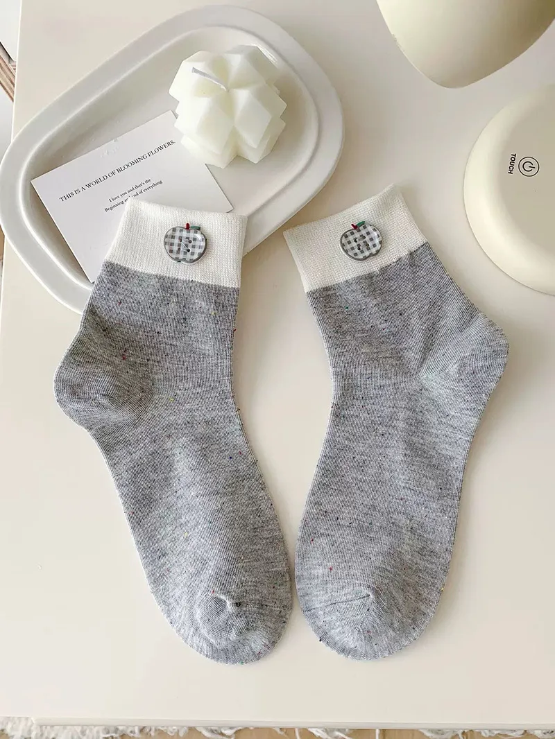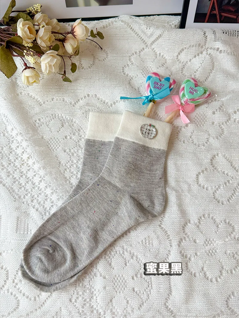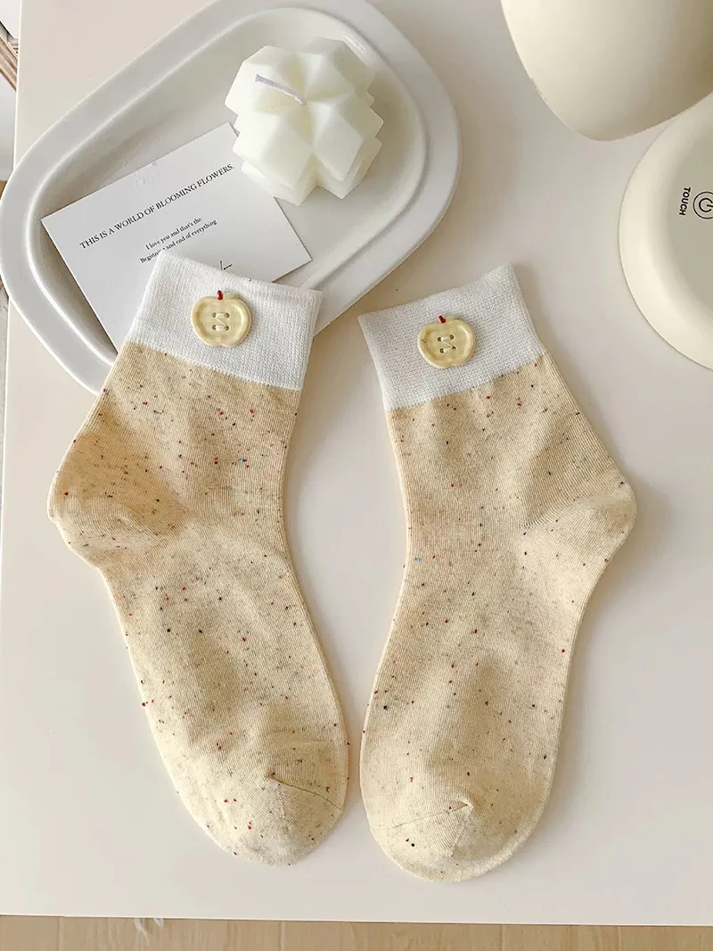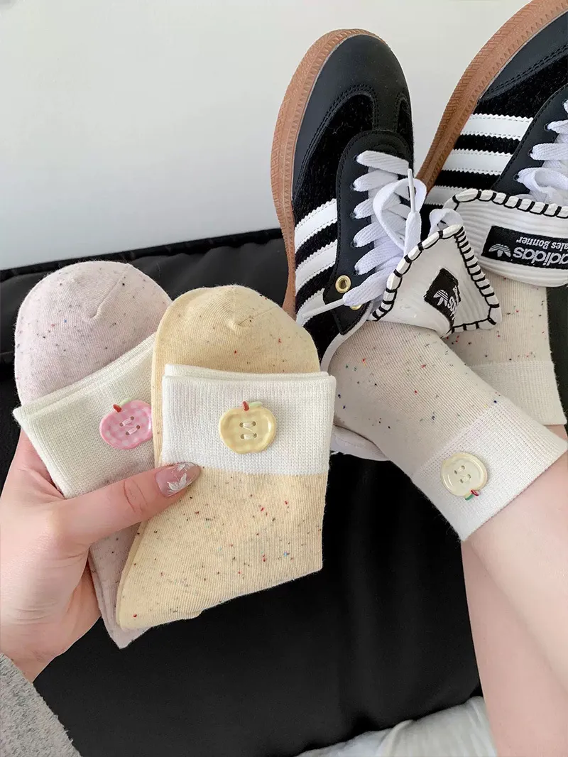 蘋果鈕釦少女襪 以療癒的馬卡龍配色搭配俏皮立體蘋果扣飾