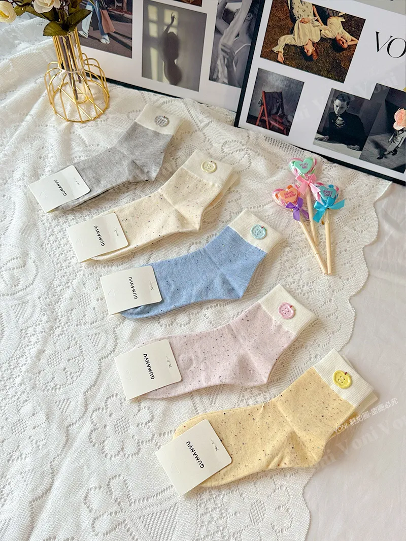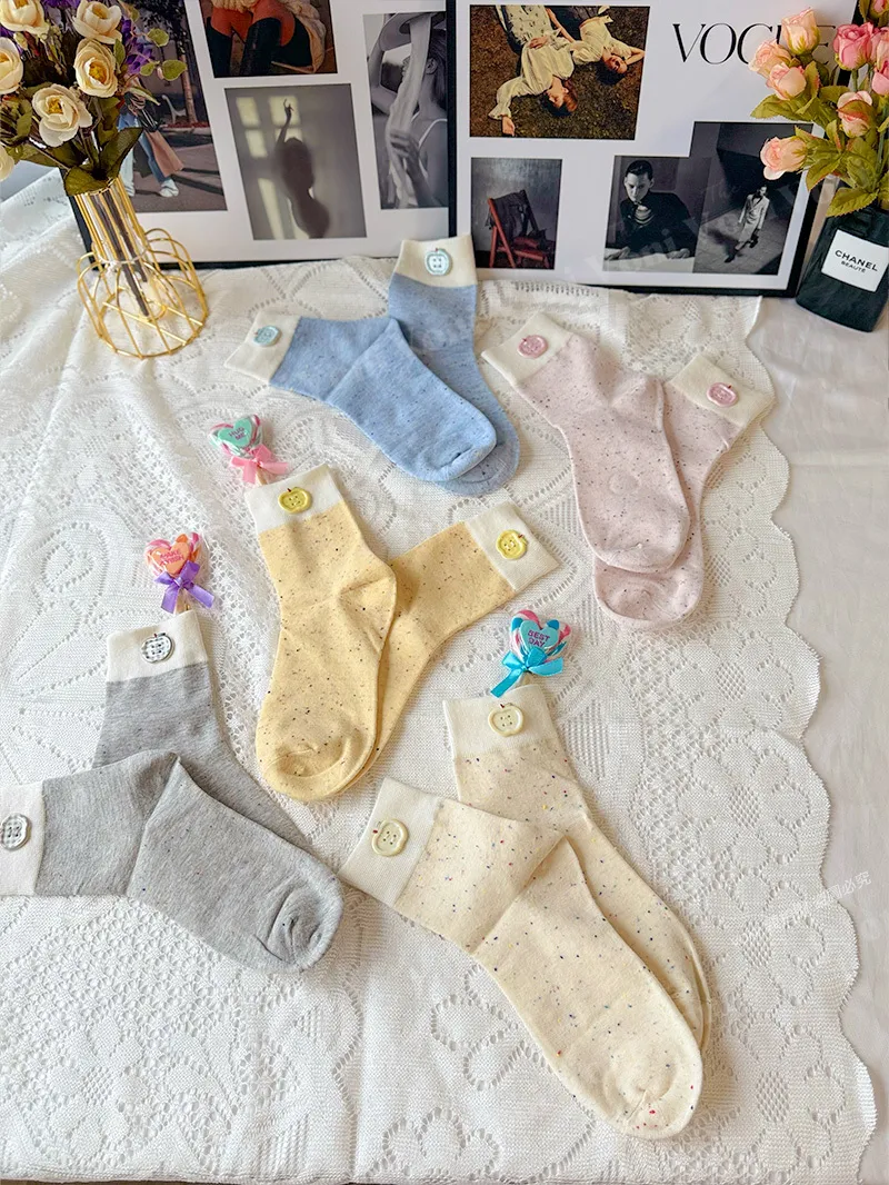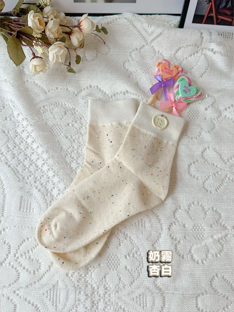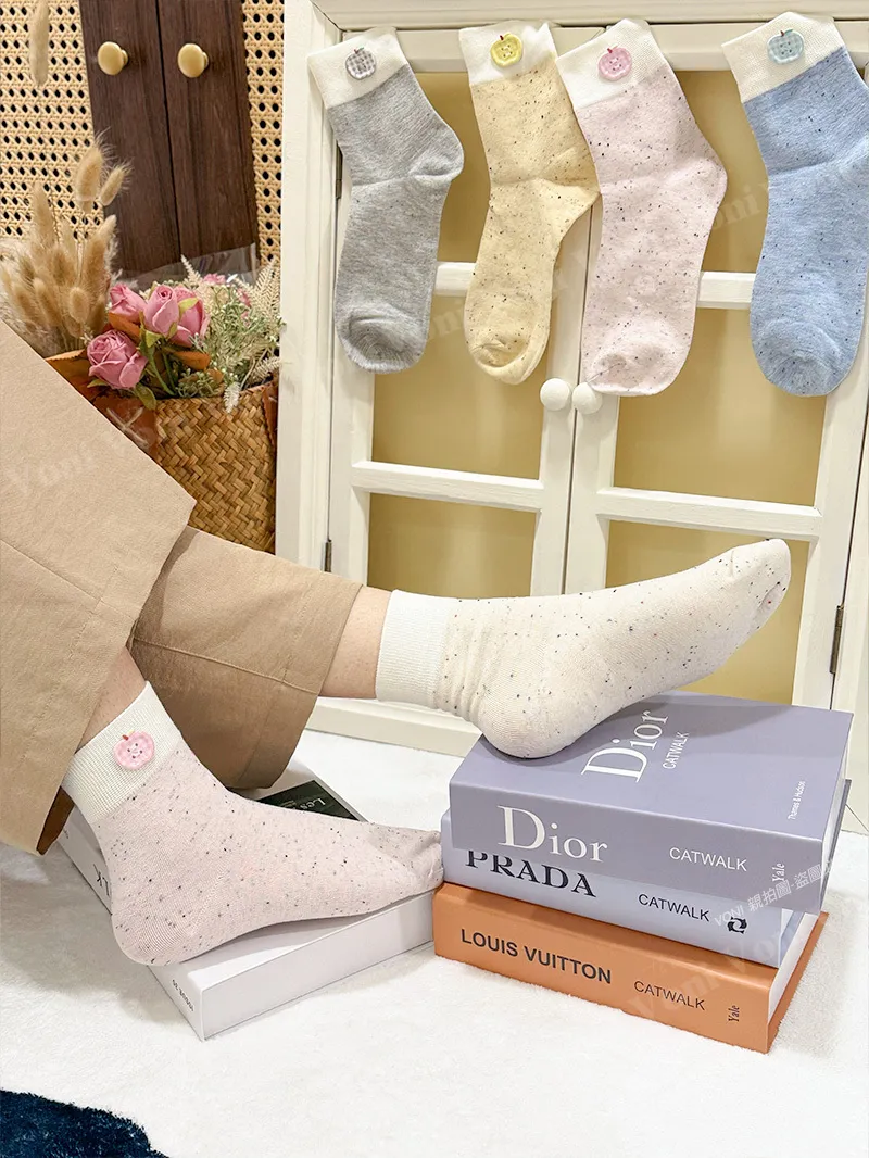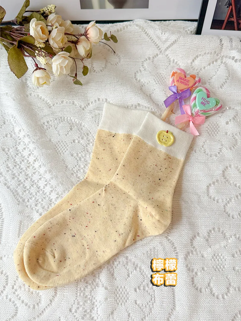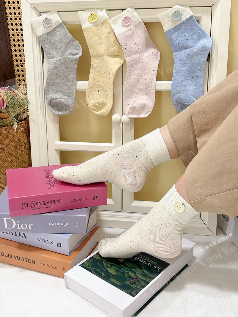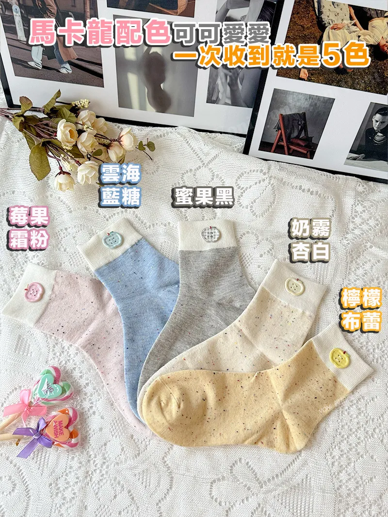 蘋果鈕釦少女襪 以療癒的馬卡龍配色搭配俏皮立體蘋果扣飾