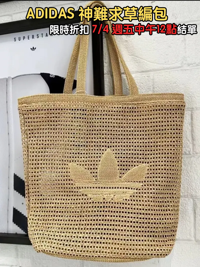 現貨-神難求 Adidas 三葉草草編托特包