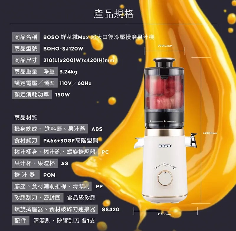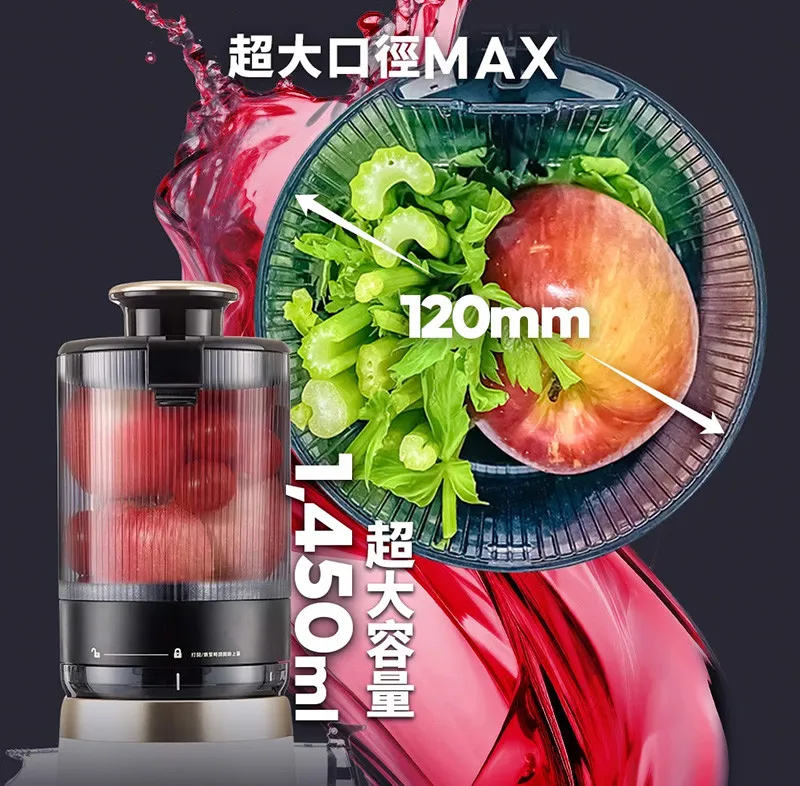 👉 更快備料:120mm 超大口徑 整顆水果直接放 蘋果都免切!