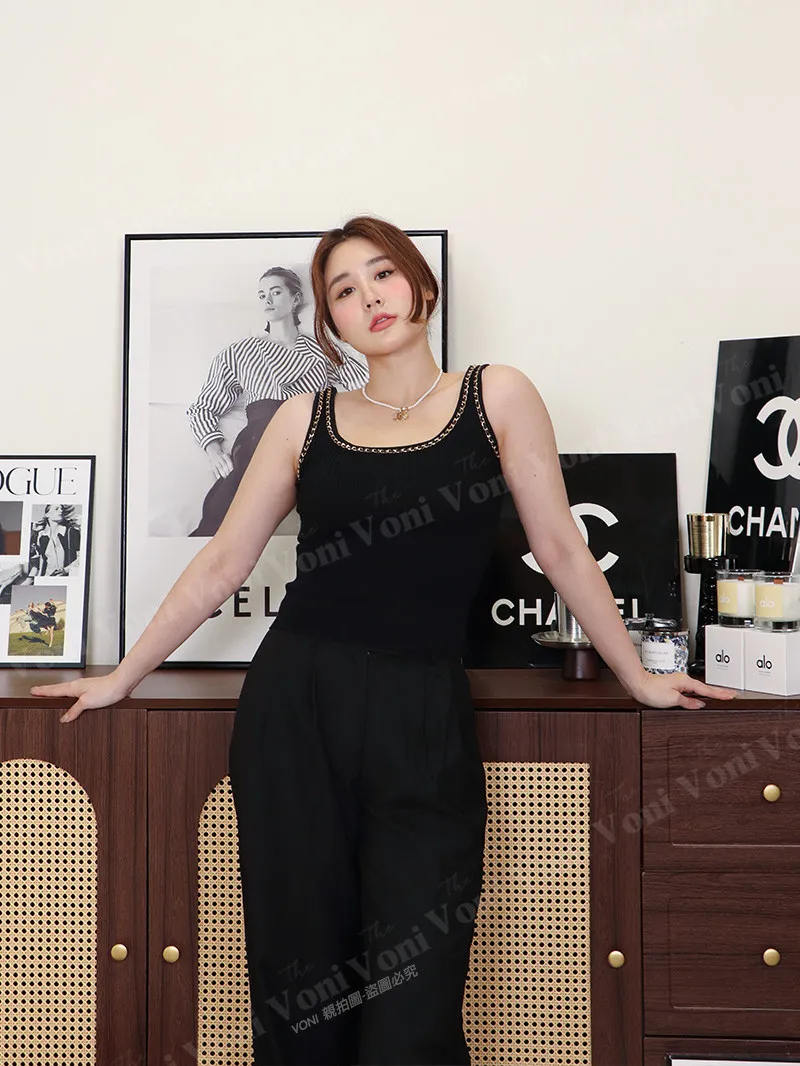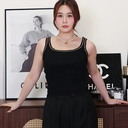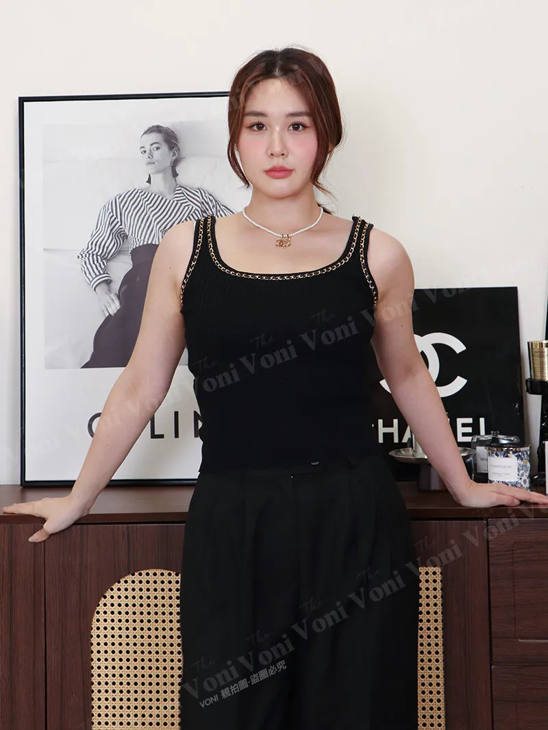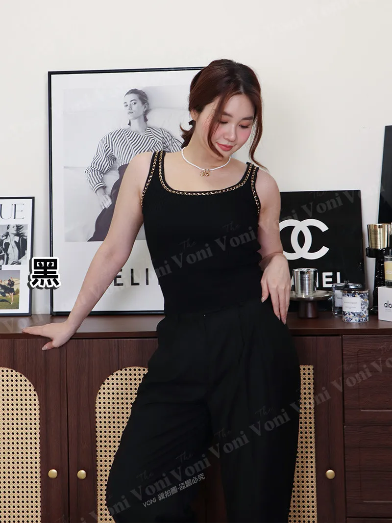 方領剪裁完美修飾鎖骨線條,搭配經典小香風皮穿鍊設計,低調卻散發滿滿氣場😍