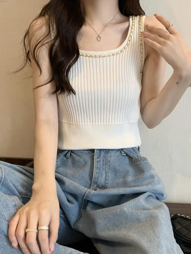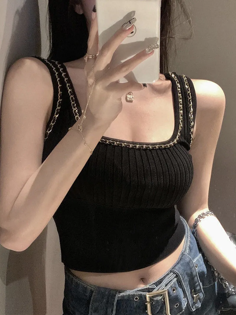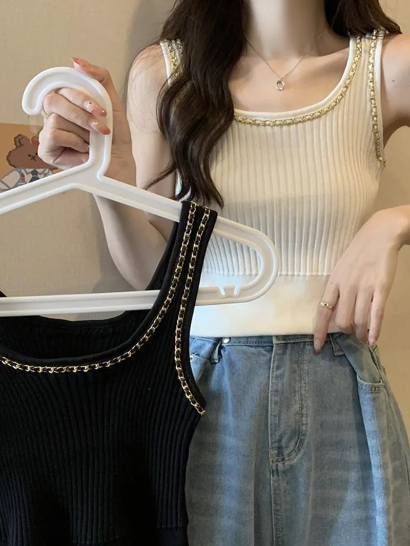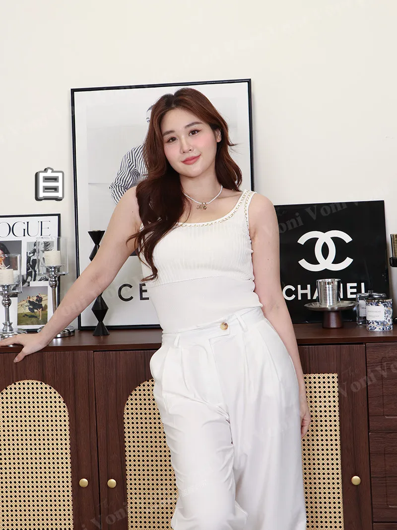 方領剪裁完美修飾鎖骨線條,搭配經典小香風皮穿鍊設計,低調卻散發滿滿氣場😍
