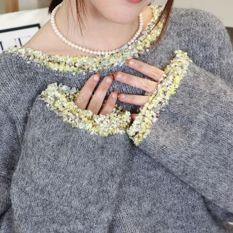 👉 粗針織+蓬鬆毛羽=慵懶又顯氣質