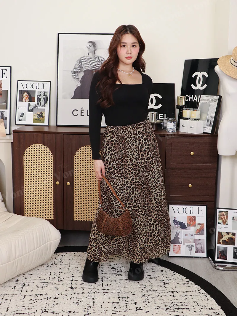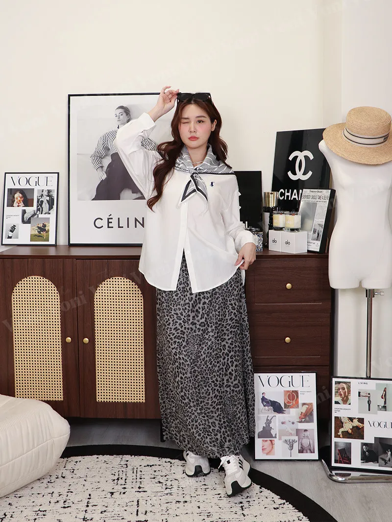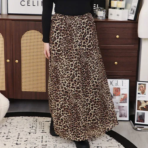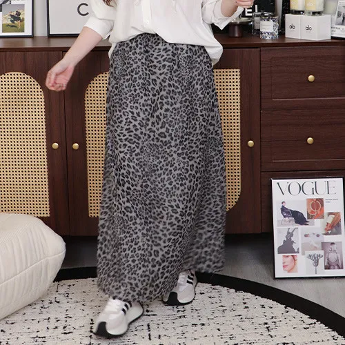 【 豹紋雪紡飄飄長裙 】