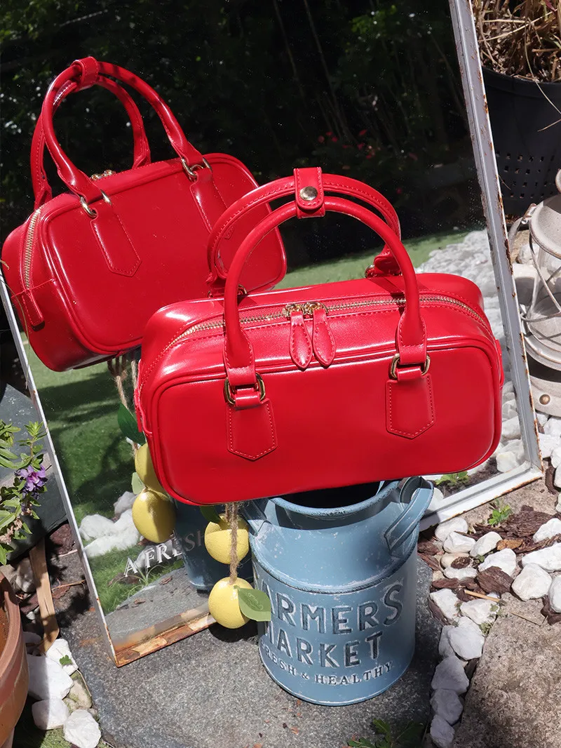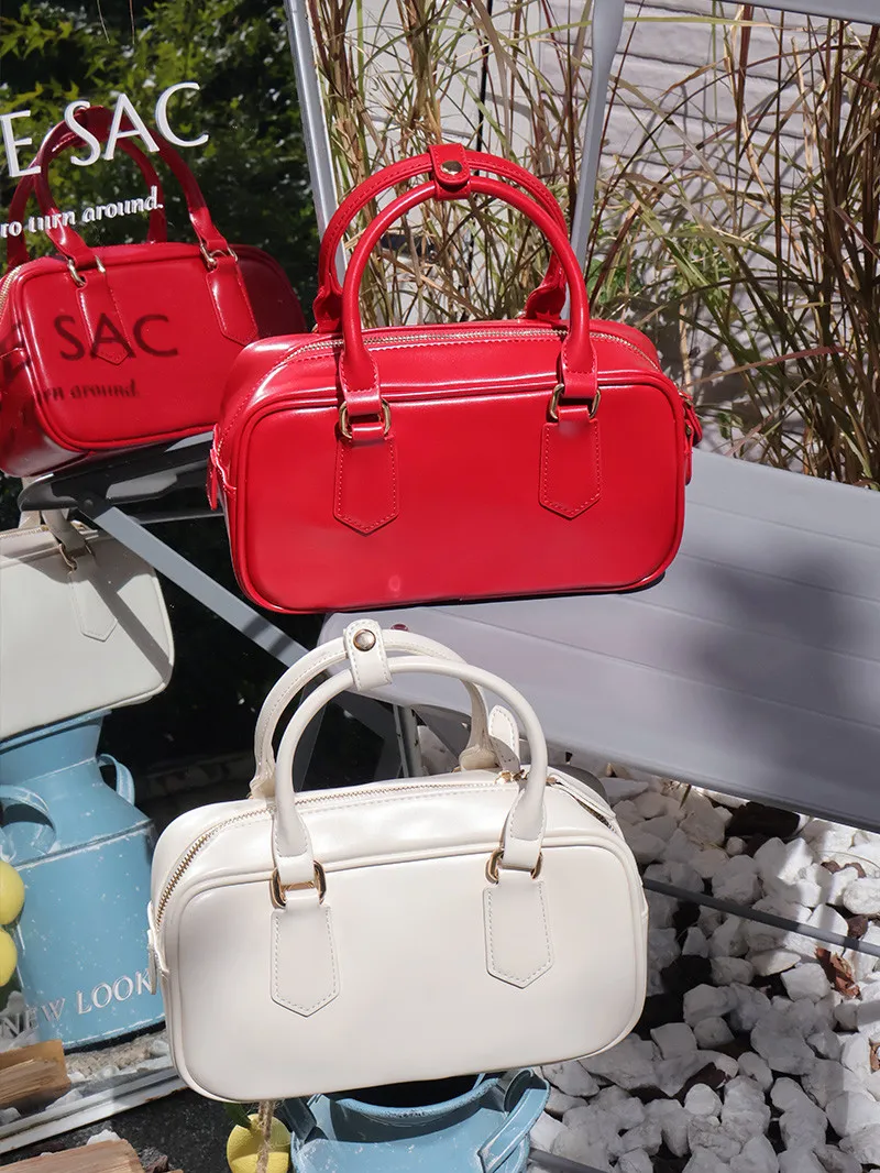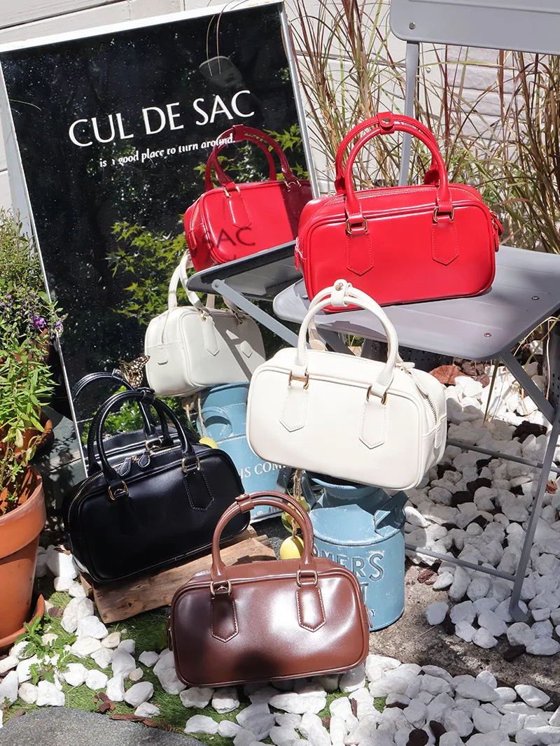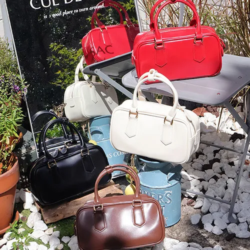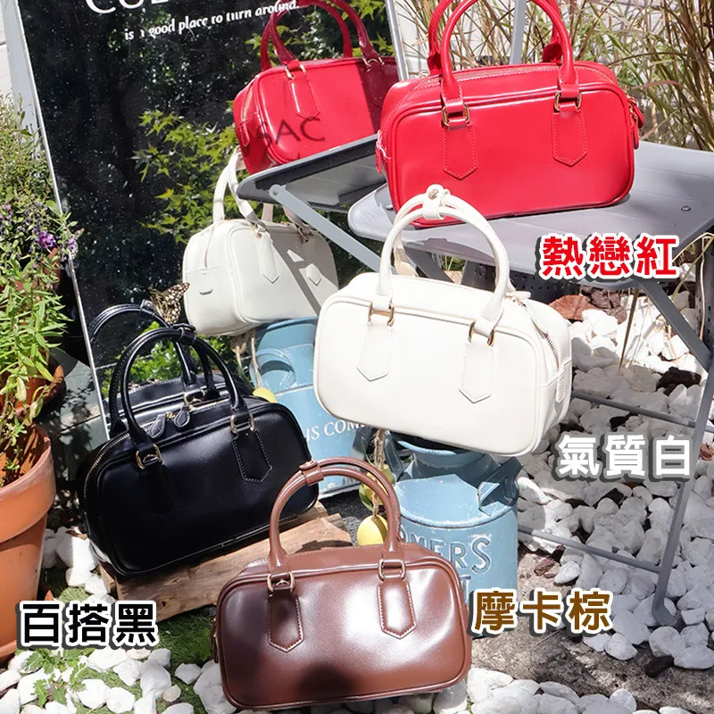 【韓妞都在背 時髦簡約高質感亮面皮革波士頓包】
