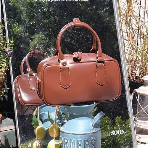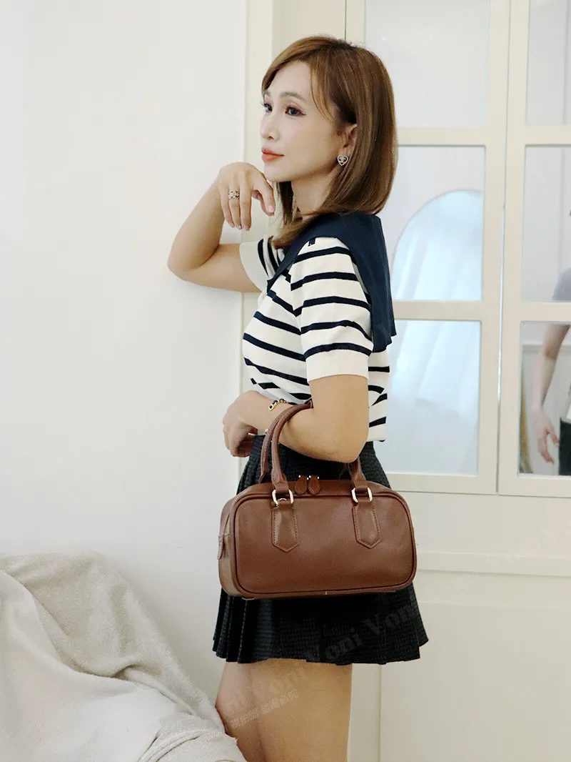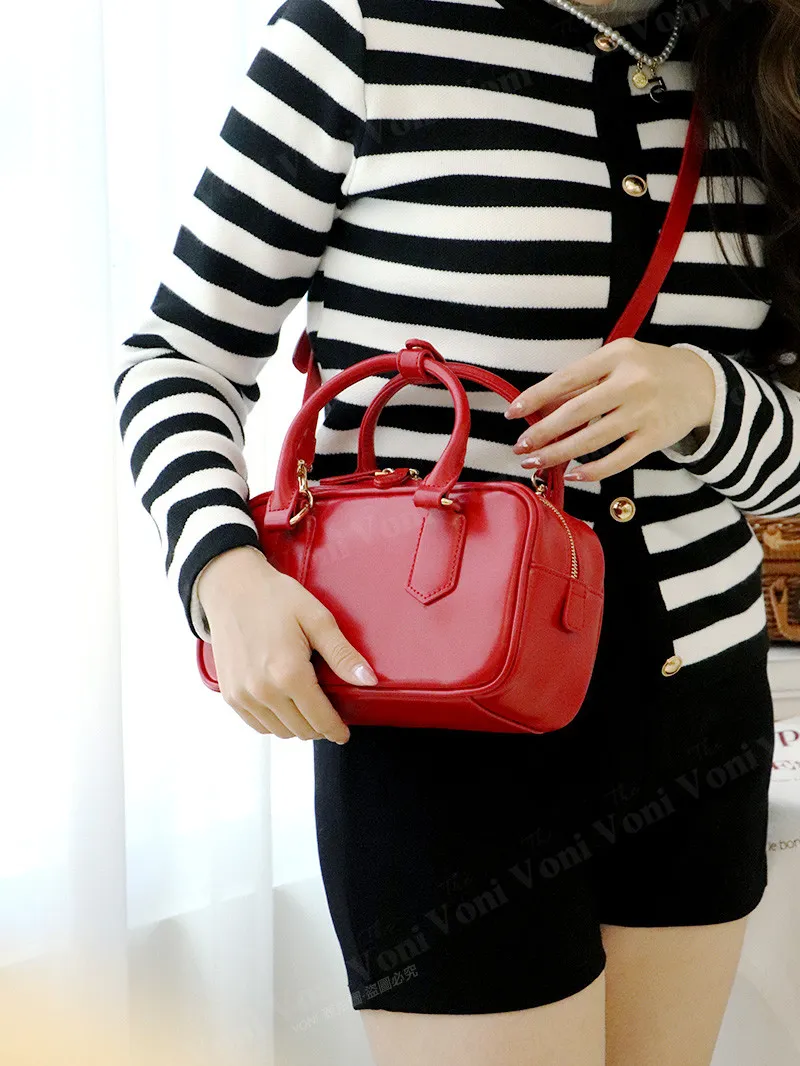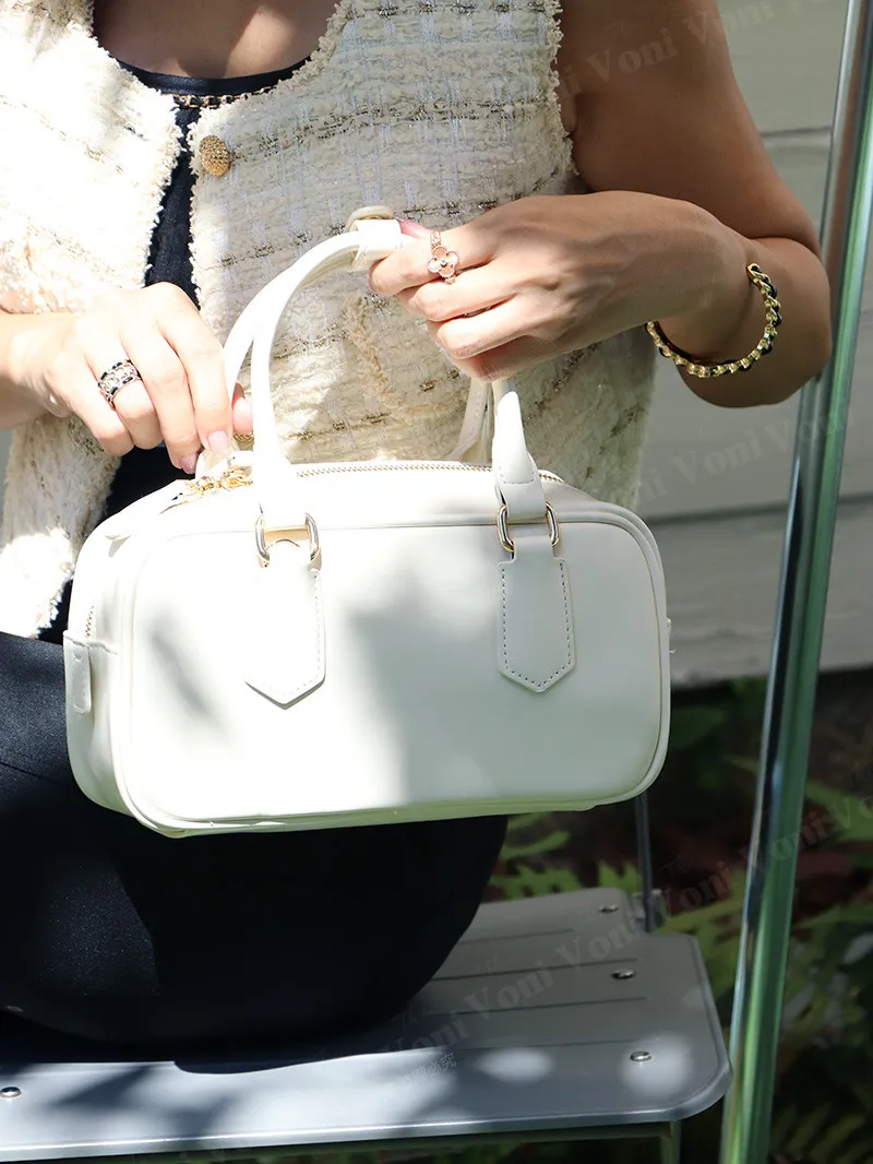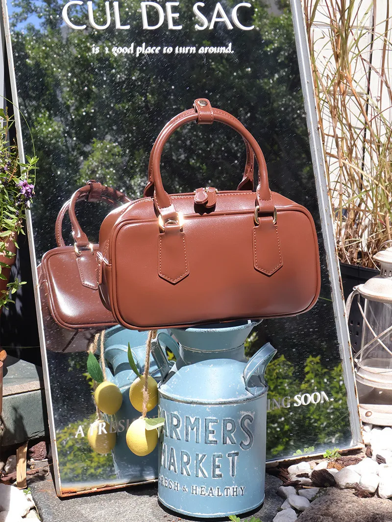【韓妞都在背 時髦簡約高質感亮面皮革波士頓包】