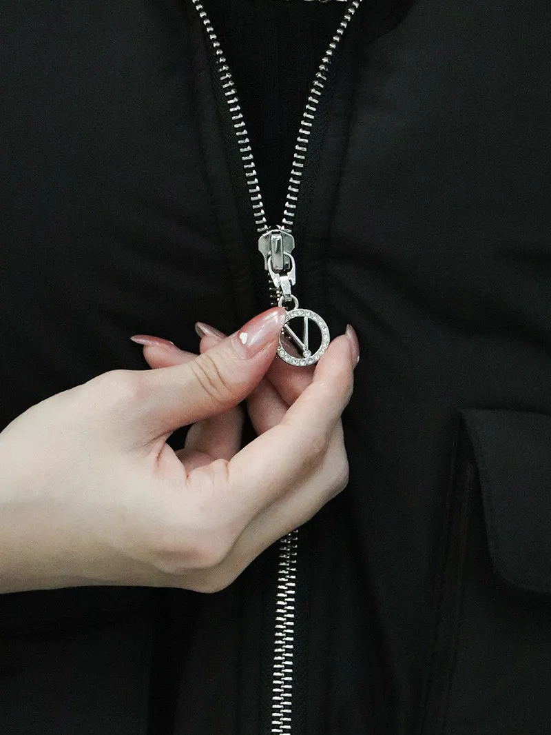 ☑️ 水鑽V字LOGO拉鍊頭 ➜ 微光折射出高級光澤感
