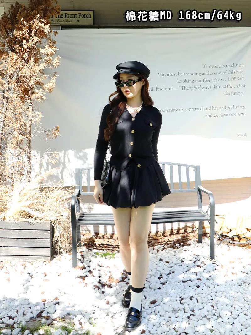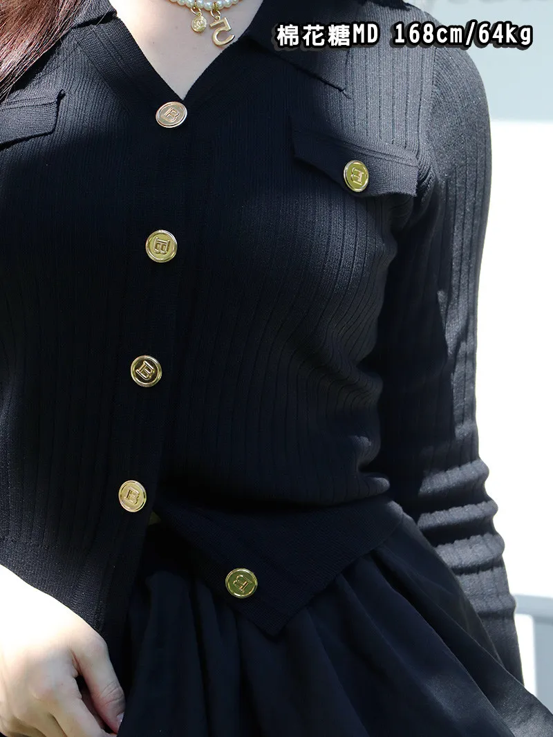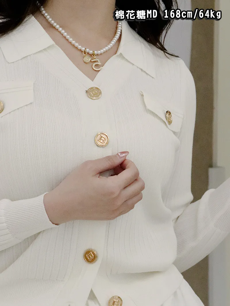 精緻金釦+直紋針織 ➝ 上身立刻顯瘦,氣質滿分!