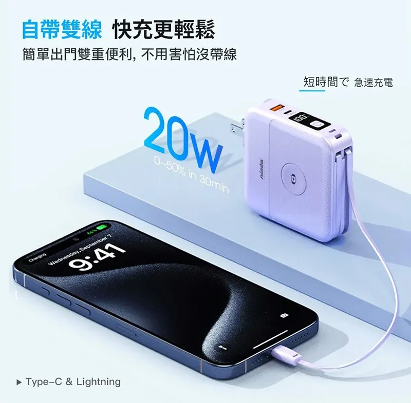 * 可拆卸自帶雙線Type-C和Lightning