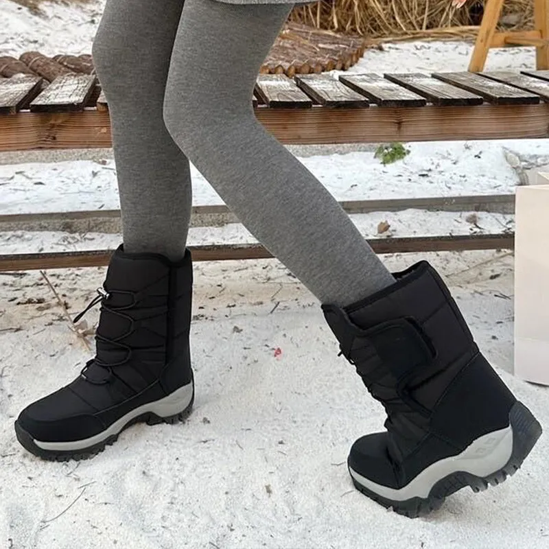 正韓東大門加絨保暖防水防風魔鬼氈厚底情侶雪靴