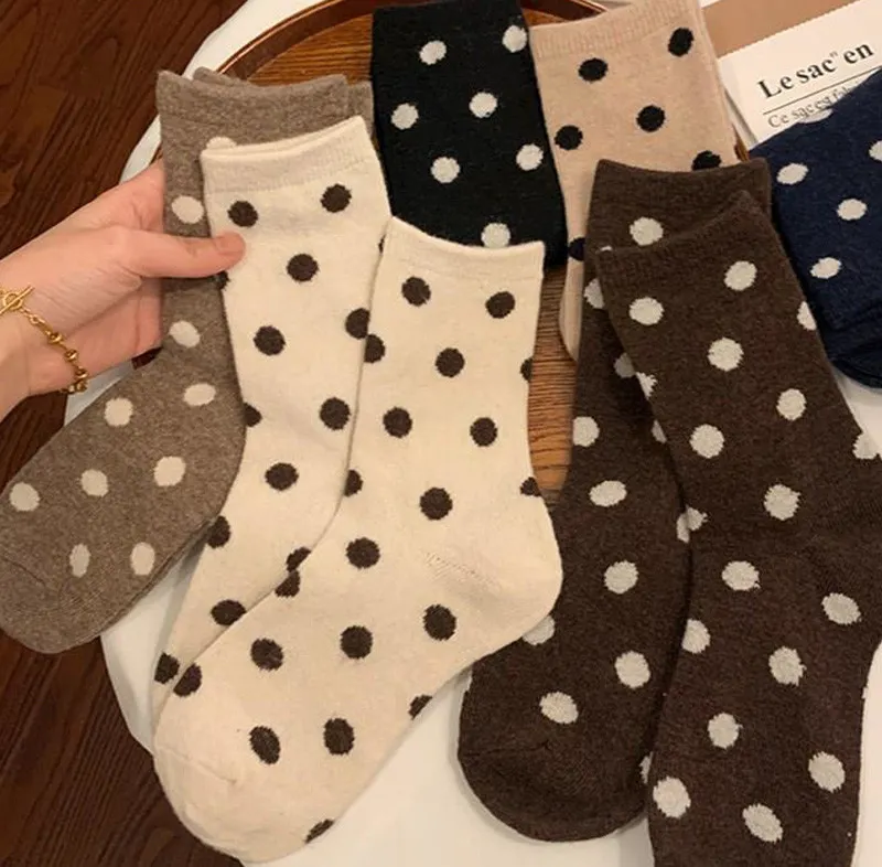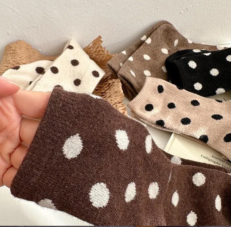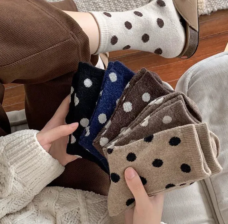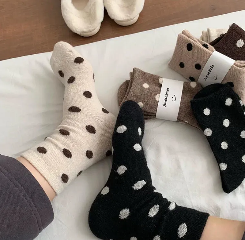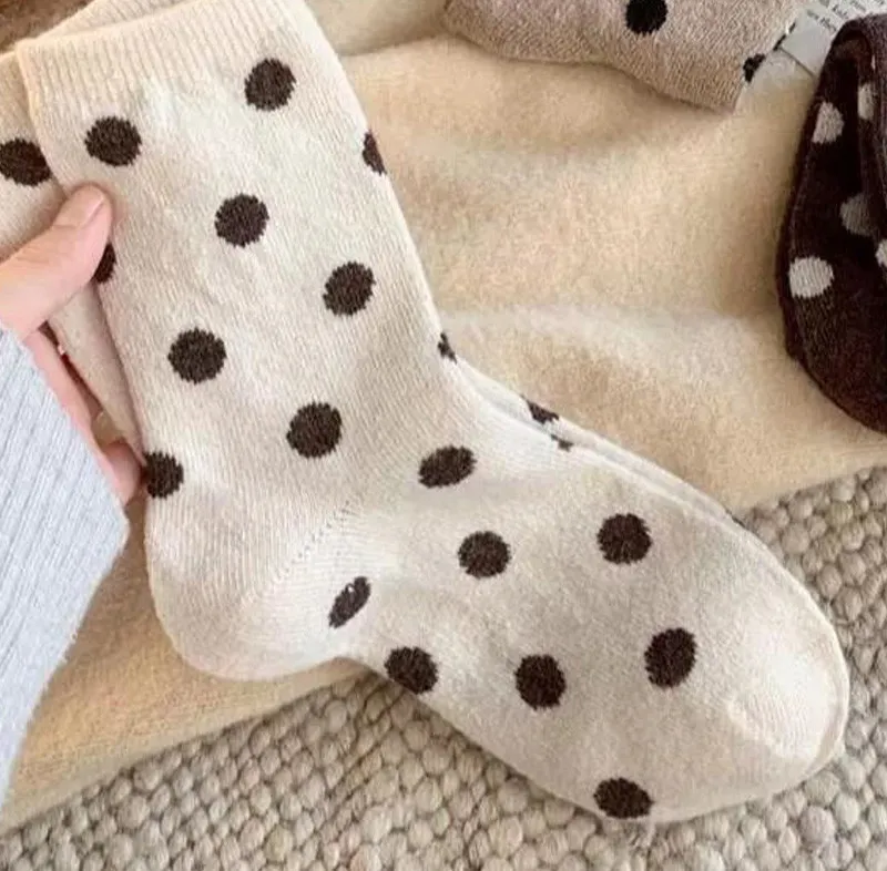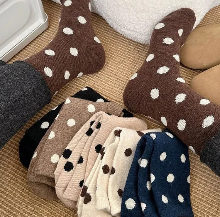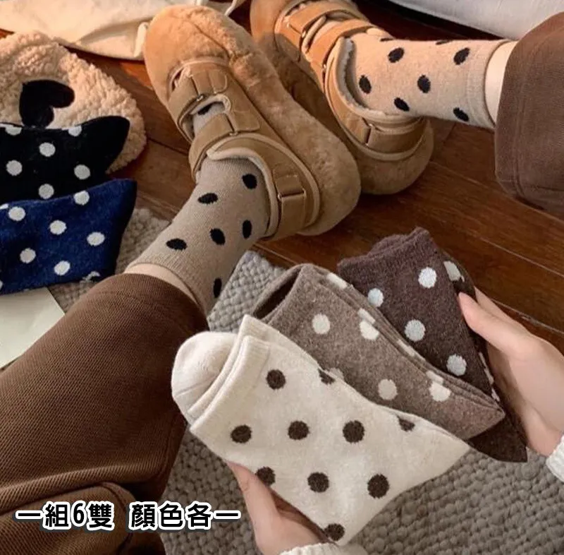 日系圓點蓄熱保暖羊毛中筒襪組