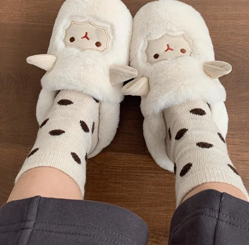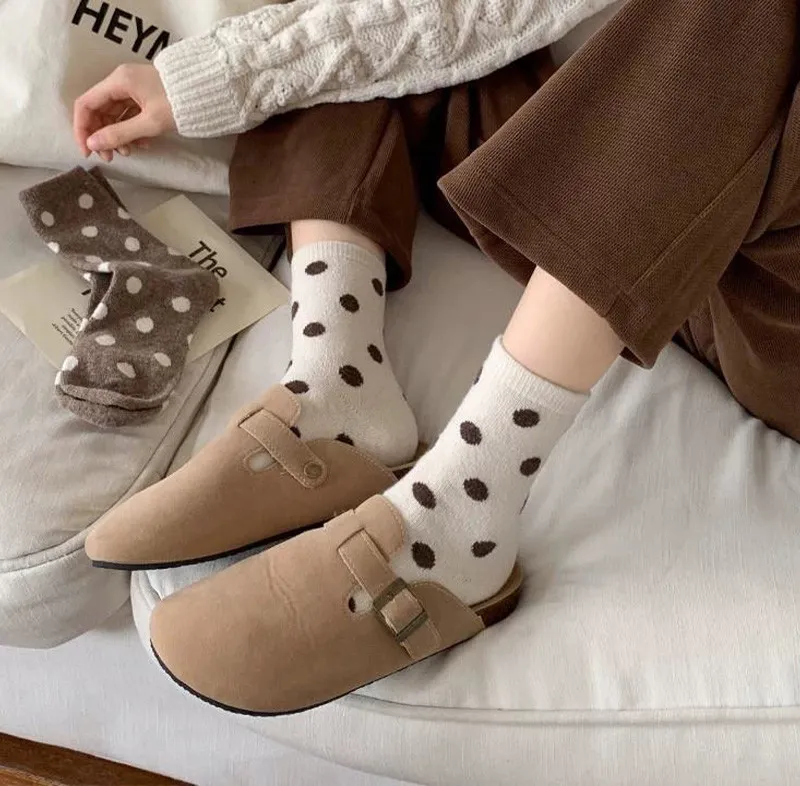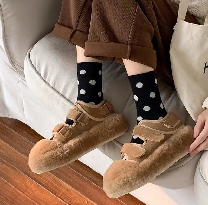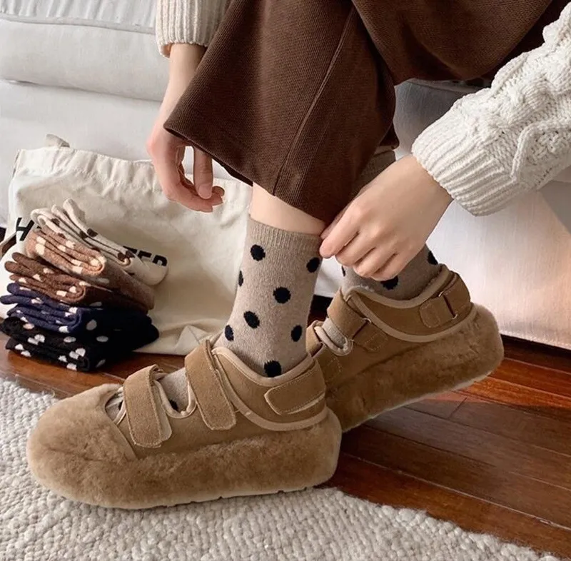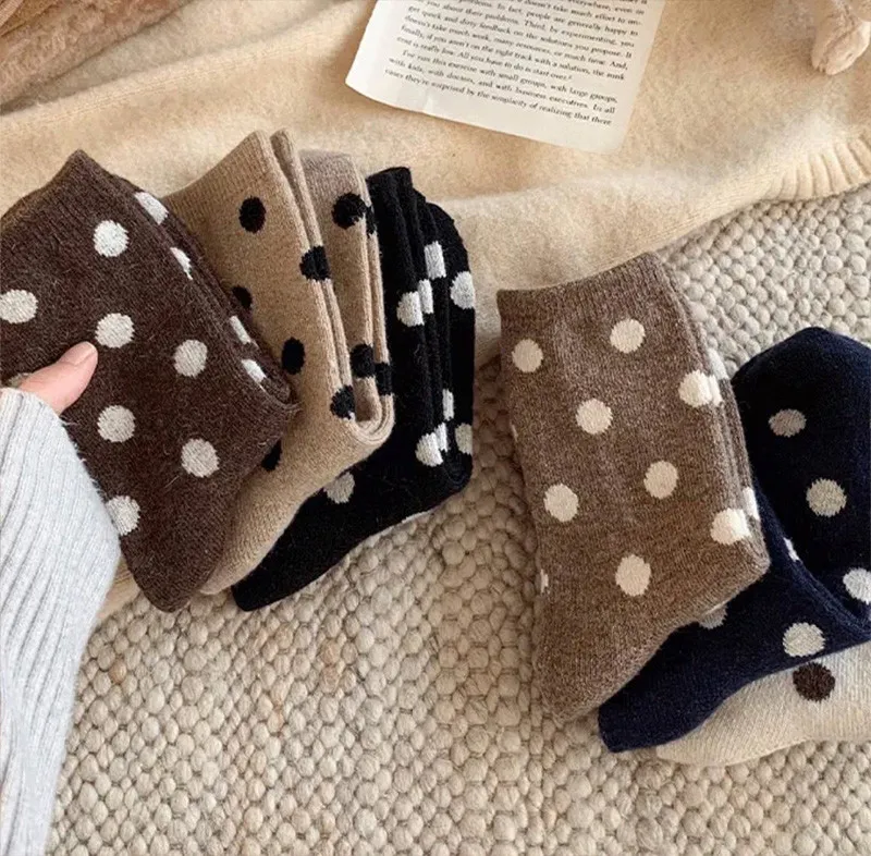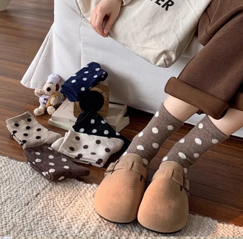 日系圓點蓄熱保暖羊毛中筒襪組